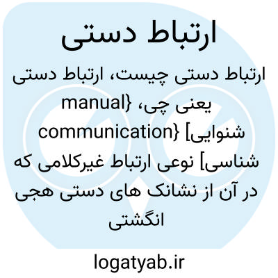 {manual communication} [شنوایی شناسی] نوعی ارتباط غیرکلامی که در آن از نشانک های دستی هجی انگشتی و ایما و اشاره استفاده می شود