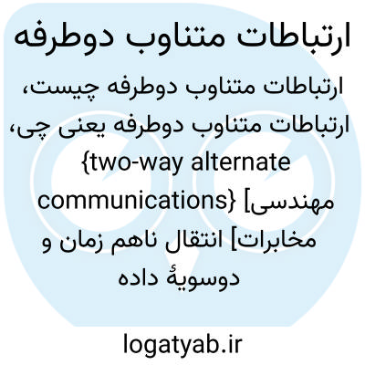 {two-way alternate communications} [مهندسی مخابرات] انتقال ناهم زمان و دوسویۀ داده در یک مجرای انتقال