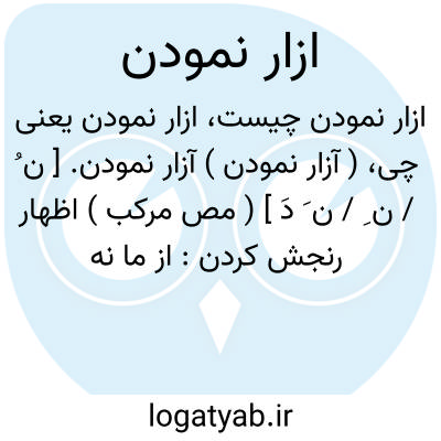 ( آزار نمودن ) آزار نمودن. [ ن ُ / ن ِ / ن َ دَ ] ( مص مرکب ) اظهار رنجش کردن: از ما نه بحقیقت آزاری نمود. ( تاریخ بیهقی ).