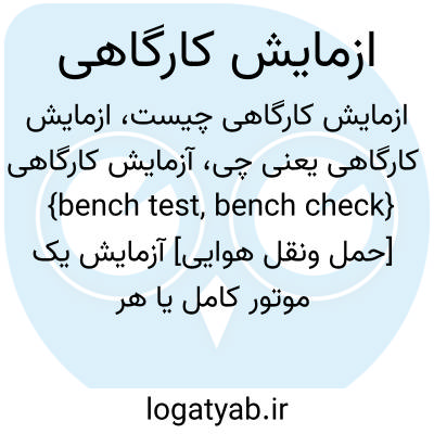 {bench test, bench check} [حمل ونقل هوایی] آزمایش یک موتور کامل یا هر سامانۀ کارکردی دیگر بر روی دکل (rig ) یا آزمایشگر