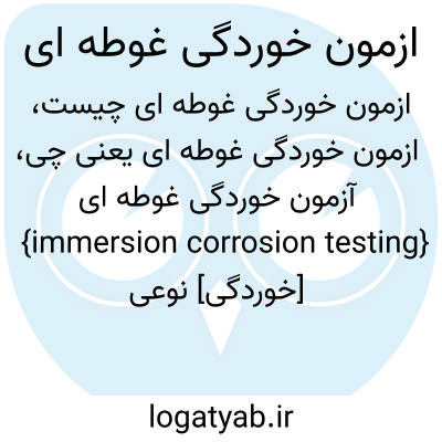 {immersion corrosion testing} [خوردگی] نوعی آزمون با غوطه ور کردن فلز آلیاژ در محلول یا مایع خاص که در آن بعد از مدت زمانی معینی کاهش وزن فلز یا آلیاژ اندازه گیری می شود