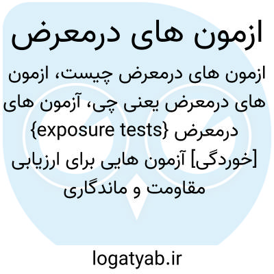 {exposure tests} [خوردگی] آزمون هایی برای ارزیابی مقاومت و ماندگاری یک پوشش یا یک پوسه (film ) با قرار دادن آن درمعرض نور خورشید یا نور فرابنفش یا رطوبت یا سرما یا گرما یا آب نمک یا جز آن