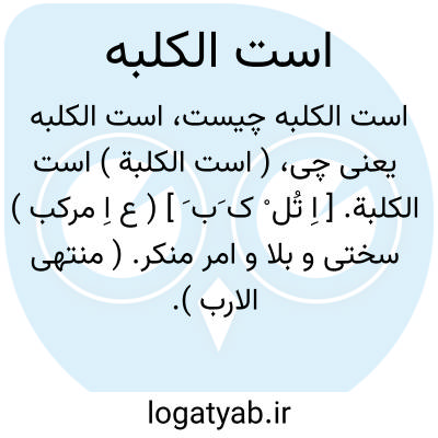 ( است الکلبة ) است الکلبة. [ اِ تُل ْ ک َب َ ] ( ع اِ مرکب ) سختی و بلا و امر منکر. ( منتهی الارب ). || قسمی بازی کودکان عرب که آنرا کجکجه نیز گویند. || لقیت منه است الکلبة؛ ناپسندی دیدم از وی. ( منتهی الارب ). رجوع به اِسْت شود.