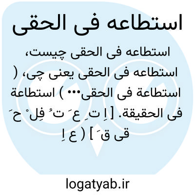 ( استطاعة فی الحقی••• ) استطاعة فی الحقیقة. [ اِ ت ِ ع َ ت ُ فِل ْ ح َ قی ق َ ] ( ع اِ مرکب ) ( الَ... ) قدرت تامه ای که با آن صدور فعل واجب آیدو بنابرین مقارن با فعل نباشد. ( تعریفات جرجانی ).