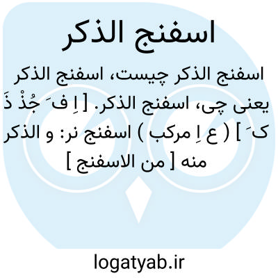 اسفنج الذکر. [ اِ ف َ جُذْ ذَ ک َ ] ( ع اِ مرکب ) اسفنج نر: و الذکر منه [ من الاسفنج ] صلب. ( تذکره ضریر انطاکی ج 1 ص 46 ). و رجوع به اسفنج ( از تحفه حکیم مؤمن ) و ابن البیطار در کلمه اسفنج شود.