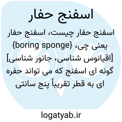 {boring sponge} [اقیانوس شناسی، جانور شناسی] گونه ای اسفنج که می تواند حفره ای به قطر تقریباً پنج سانتی متر در سنگ های آهکی یا کفۀ نرم تنان ایجاد کند