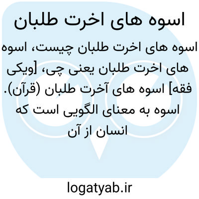 [ویکی فقه] اسوه های آخرت طلبان (قرآن). اسوه به معنای الگویی است که انسان از آن پیروی می کند، چه در زمینه خوبی و چه در زمینه بدی. این کلمه در اصطلاح اسلامی برای پیروی از الگوهای شایسته استفاده می شود.