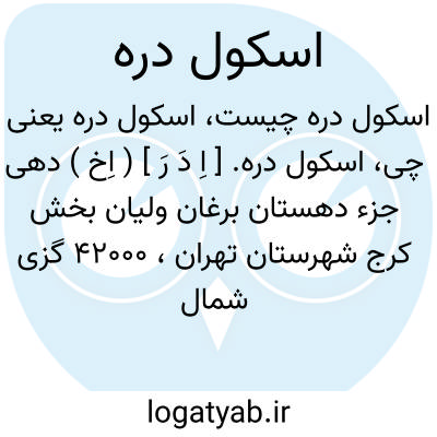 اسکول دره. [ اِ دَ رَ ] ( اِخ ) دهی جزء دهستان برغان ولیان بخش کرج شهرستان تهران، 42000 گزی شمال باختر کرج، 18000 گزی شمال راه شوسه کرج به قزوین در کوهستان. سکنه 86 تن شیعه، فارسی زبان. سردسیر. آب آن از قنات. محصول آن غلات، انواع میوه جات، قلمستان، عسل، لبنیات. شغل اهالی زراعت و گله داری است. ( فرهنگ جغرافیایی ایران ج 1 ص 12 ).