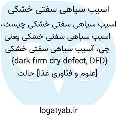 {dark firm dry defect, DFD} [علوم و فنّاوری غذا] حالت نامطلوبی که در آن گوشت با اسیدی شدن بافت ها ظاهری تیره پیدا می کند و سفت میشود