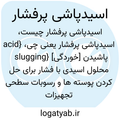 {acid slugging} [خوردگی] پاشیدن محلول اسیدی با فشار برای حل کردن پوسته ها و رسوبات سطحی تجهیزات صنعتی درحال کار