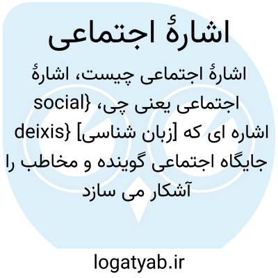 {social deixis} [زبان شناسی] اشاره ای که جایگاه اجتماعی گوینده و مخاطب را آشکار می سازد