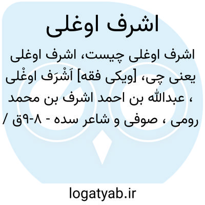 [ویکی فقه] اَشْرَف اوغْلی، عبدالله بن احمد اشرف بن محمد رومی، صوفی و شاعر سده - ۸-۹ق / ۱۴- ۱۵م و مؤسس طریقت اشرفیه در ترکیه عثمانی است.