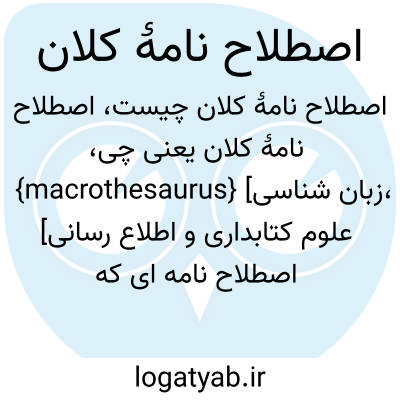 {macrothesaurus} [زبان شناسی، علوم کتابداری و اطلاع رسانی] اصطلاح نامه ای که اصطلاحات بیش از یک حوزه را در بر می گیرد و ازنظر روابط معنایی از عمق کمتری برخوردار است