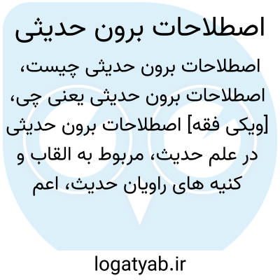 [ویکی فقه] اصطلاحات برون حدیثی در علم حدیث، مربوط به القاب و کنیه های راویان حدیث، اعم از معصومان (علیهم السّلام) و دیگران است. و به دو گروه شخصی و کتاب شناسی تقسیم می شود. اصطلاحات شخصی به شرح زیر هستند: ← صحابه اصطلاحات کتاب شناسی به شرح زیر هستند: ← معجم اصطلاحات حدیثی؛ اصطلاحات درون حدیثی؛ اصطلاحات رایج محدثان.