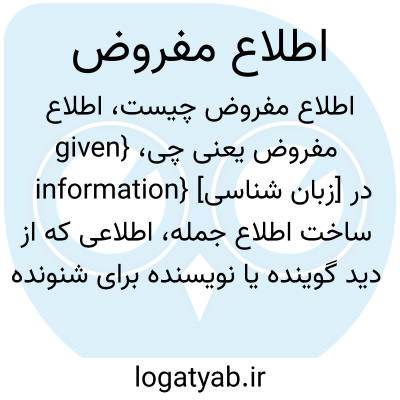 {given information} [زبان شناسی] در ساخت اطلاع جمله، اطلاعی که از دید گوینده یا نویسنده برای شنونده یا خواننده آشناست و از آن خبر دارد متـ. اطلاع کهنه old information