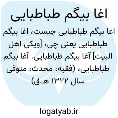 [ویکی اهل البیت] آغا بیگم طباطبایی. آغا بیگم طباطبایی، (فقیه، محدث، متوفی سال 1322 هـ.ق) مادر آیت الله بروجردی، از زنان فقیه، محدث، سخنور، عابد و زاهد. مقدمات علوم اسلامی و ادبیات عرب را از علمای آن زمان فراگرفت سپس نزد مردان دانشمند خانواده اش فقه آموخت. زمانی که به سن رشد رسید به ازدواج سید علی طباطبایی بروجردی درآمد و از او پسری به نام سید حسین (آیت الله بروجردی، مرجع تقلید) به دنیا تقدیم شد. خانواده آغا بیگم از خاندان های بزرگ علم و فضیلت در بروجرد بود. از میان آن ها مردان و زنان بزرگی برخاستند.آن مرحومه به سال 1323 هـ.ق در بروجرد درگذشت و بر حسب وصیت، پیکرش را در وادی السلام نجف اشرف به خاک سپردند. معاونت پژوهش مرکز حوزه های علمیه خواهران, بانوان عالمه و آثار آن ها