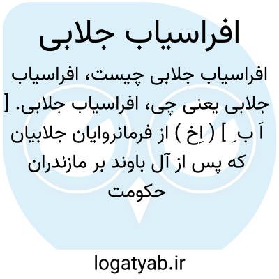 افراسیاب جلابی. [ اَ ب ِ ] ( اِخ ) از فرمانروایان جلابیان که پس از آل باوند بر مازندران حکومت داشتند. رجوع به حبیب السیر چ خیام ج 3 ص 337 و فهرست آن شود.