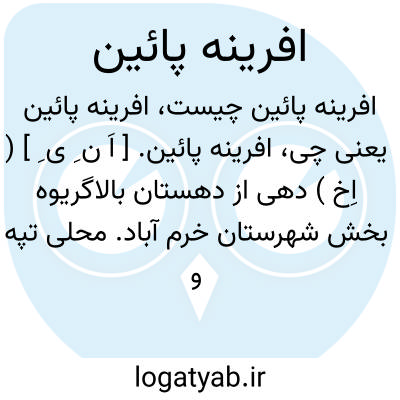 افرینه پائین. [ اَ ن ِ ی ِ ] ( اِخ ) دهی از دهستان بالاگریوه بخش شهرستان خرم آباد. محلی تپه و ماهور و گرمسیر است. سکنه آن 150 تن و آب آن از رودخانه کشکان و محصول آن غلات و لبنیات و شغل اهالی زراعت و گله داری و راه آن اتومبیل رو است. این ده، معادن گچ و چند باب دکان و آثار قلعه خرابه دارد و ساکنین آن از طایفه جودکی معروف به بالاگریوه هستند. ( از فرهنگ جغرافیایی ایران ج 6 ).