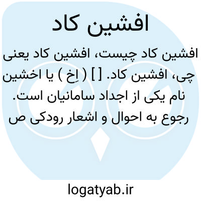 افشین کاد. [ ] ( اِخ ) یا اخشین نام یکی از اجداد سامانیان است. رجوع به احوال و اشعار رودکی ص 317 شود.