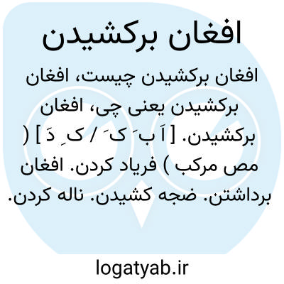 افغان برکشیدن. [ اَ ب َ ک َ / ک ِ دَ ] ( مص مرکب ) فریاد کردن. افغان برداشتن. ضجه کشیدن. ناله کردن. و رجوع به افغان شود.