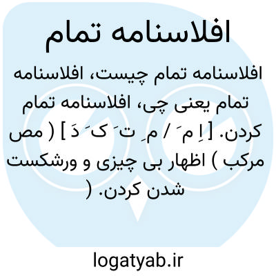 افلاسنامه تمام کردن. [ اِ م َ / م ِ ت َ ک َ دَ ] ( مص مرکب ) اظهار بی چیزی و ورشکست شدن کردن. ( ناظم الاطباء ).