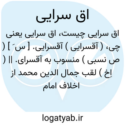 ( آقسرایی ) آقسرایی. [ س َ ] ( ص نسبی ) منسوب به آقسرای. || ( اِخ ) لقب جمال الدین محمد از اخلاف امام فخر رازی، و او از دانشمندان عصر خویش بوده است، معاصر با میرسید شریف جرجانی.