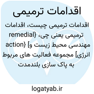 {remedial action} [مهندسی محیط زیست و انرژی] مجموعه فعالیت های مربوط به پاک سازی بلندمدت برای کاهش یا از بین بردن مواد خطرناک برای سلامت انسان یا مضر برای محیط زیست، شامل پاک سازی و زدایش و محدودسازی (containment ) و جداسازی (isolation ) و تصفیه و پایش