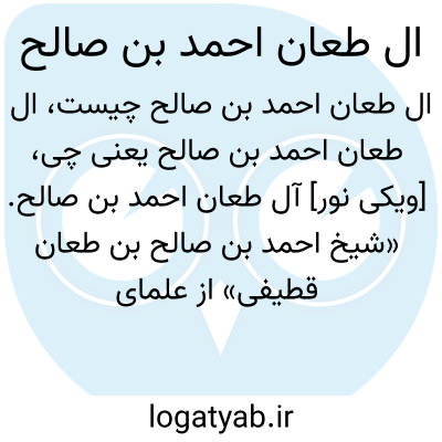 [ویکی نور] آل طعان احمد بن صالح. «شیخ احمد بن صالح بن طعان قطیفی» از علمای امامیّه اوائل قرن چهاردهم هجری می باشد. از زندگی او اطلاع چندانی در دست نیست. همین قدر می دانیم که او از شاگردان شیخ مرتضی انصاری بوده و از جمله تألیفات او عبارتند از: