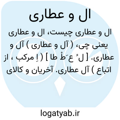 ( آل و عطاری ) آل و عطاری. [ ل ُ ع َطْ طا ] ( اِ مرکب، از اتباع ) آل عطاری. آخریان و کالای عطاری از حنا و رنگ و قند و فلفل و زردچوبه و دارچین و نخ و سوزن و سنجاق و قندرون و امثال آن. || پیله وری.