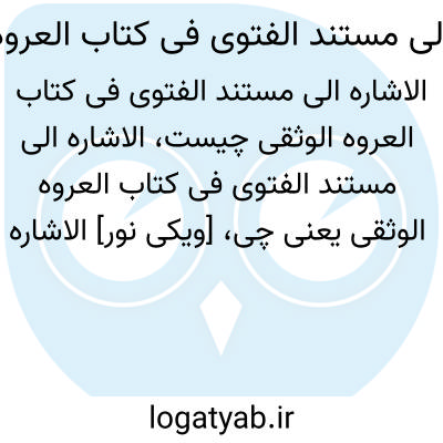 [ویکی نور] الاشاره الی مستند الفتوی فی کتاب العروه الوثقی (اجتهاد تقلید طهارت). الإشارة إلی مستند الفتوی فی کتاب العروة الوثقی تألیف یوسف بن علی ایروانی غروی، نسخه ای دست نویس و حاشیه ای بر کتاب عروة الوثقی تألیف سید محمدکاظم طباطبایی یزدی (متوفی 1337ق) است. در کتاب عروه، فتاوای فقهی صاحب عروه در قالب 3260 مسئله مطرح شده است و فقیهان شیعه در صده اخیر فتاوای خود را در حاشیه این کتاب بیان کرده اند. ایروانی در این اثر بر دو مبحث اجتهاد و تقلید و همچنین مطهرات حاشیه زده است.