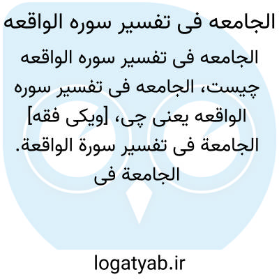 [ویکی فقه] الجامعة فی تفسیر سورة الواقعة. الجامعة فی تفسیر سورة الواقعة اثر سید محمدعلی هبة الدین (۱۳۰۱ - ۱۳۸۶ ق) فرزند سیدحسین حسینی حائری مشهور به سید هبة الدین شهرستانی، از معاریف علمای شیعه می باشد.