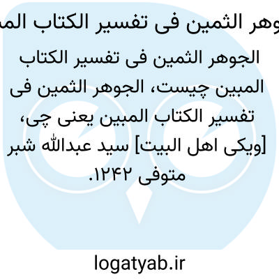 [ویکی نور] الجوهر الثمین فی تفسیر القرآن المبین، به زبان عربی، اثر سید عبدالله شبر، متعلق به قرن 13ق، مجموعه ای تفسیری از کل آیات قرآن کریم است.