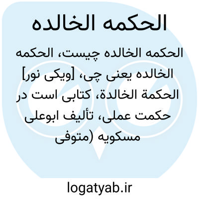 [ویکی نور] الحکمة الخالدة، کتابی است در حکمت عملی، تألیف ابوعلی مسکویه (متوفی 421ق) حکیم، مورخ و ادیب عهد آل بویه. این کتاب، اندرزنامه ای است شامل ادب و حکمت اقوام ایرانی، هندی، عرب و رومی؛ به همین سبب، گاهی آن را «آداب الفرس و الهند و العرب و الروم» نیز نامیده اند.
