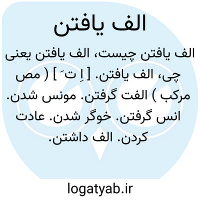 الف یافتن. [ اِ ت َ ] ( مص مرکب ) الفت گرفتن. مونس شدن. انس گرفتن. خوگر شدن. عادت کردن. الف داشتن. رجوع به اِلف شود: و رعایای این ممالک بمدت ملک ما در دامن امن و فراغت اعتیاد و عادت گرفته اندو با تخفیف و ترفیه الف یافته. ( سندبادنامه ص 40 ).