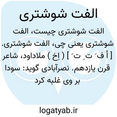 الفت شوشتری. [ اُ ف َ ت ِ ت َ ] ( اِخ ) ملاداود، شاعر قرن یازدهم. نصرآبادی گوید: سودا بر وی غلبه کرد و به حسنعلی بن مولی عبداﷲ تستری درشتی کرد. این اشعار ازوست:
