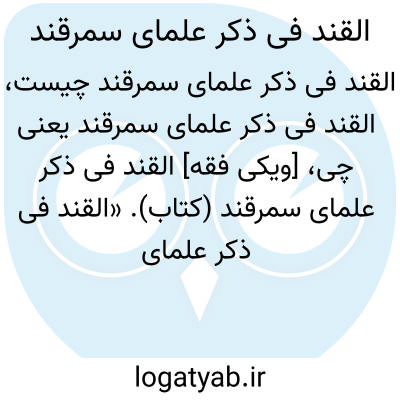 [ویکی فقه] القند فی ذکر علمای سمرقند (کتاب). «القند فی ذکر علمای سمرقند»، تالیف عالم حنفی عمر بن محمد نسفی (۵۳۷- ۴۶۲ ق) به زبان عربی است. این کتاب از نظر در بر داشتن نام محدثان بسیار و سلسله روایات آنان در خور اهمیت است. همچنین از جهت ذکر اسامی خاص ایرانی و اعلام جغرافیایی ناحیه ی سغد قدیم و دیگر نواحی ماوراءالنهر در خور توجه است.