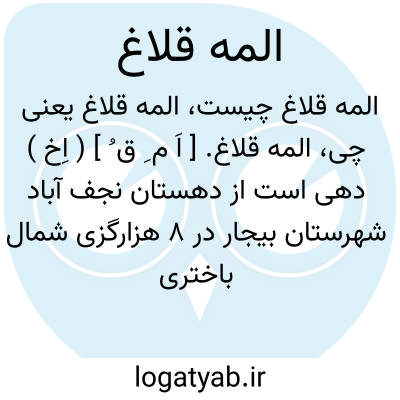 المه قلاغ. [ اَ م ِ ق ُ ] ( اِخ ) دهی است از دهستان نجف آباد شهرستان بیجار در 8 هزارگزی شمال باختری نجف آباد و 5 هزارگزی شمال شوسه بیجار - سنندج. تپه ماهور و سردسیر است. سکنه آن 70 تن سنی و شیعه اند و به کردی و فارسی سخن میگویند. آب آن از چشمه تأمین میشود ومحصول آن غلات و لبنیات، و شغل مردم زراعت و گله داری، و صنایع دستی زنان قالیچه، گلیم و جاجیم بافی است.راه مالرو دارد. ( از فرهنگ جغرافیایی ایران ج 5 ).
