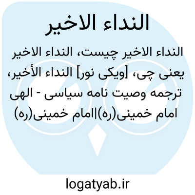 [ویکی نور] النداء الأخیر، ترجمه وصیت نامه سیاسی - الهی امام خمینی(ره)|امام خمینی(ره) به زبان عربی، مشتمل بر مقدمه مفصلی از ناشر، متن وصیت نامه و تعلیقات است.
