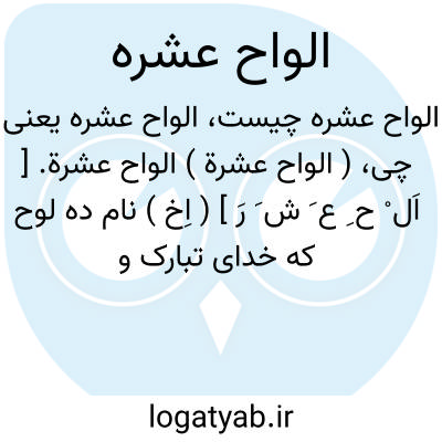 ( الواح عشرة ) الواح عشرة. [ اَل ْ ح ِ ع َ ش َ رَ ] ( اِخ ) نام ده لوح که خدای تبارک و تعالی به موسی فرستاد و گویندلوحها برنگ سبز و کتابت سرخ مانند نور آفتاب بود.