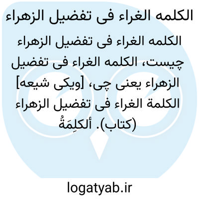 [ویکی شیعه] الکلمه الغراء فی تفضیل الزهراء (کتاب). ألکلِمَةُ الغَرّاء فی تَفضیلِ فاطمةِ الزّهراء (س) وَ عقیلَةُ الوَحی زینب (س) بنت أمیرِالمؤمنین(ع)، کتابی درباره مقام و فضیلت حضرت زهرا (س)، اثر سید عبدالحسین شرف الدین (متوفای ۱۳۷۷ ق). مؤلف بعد از آوردن آیات نازل شده در شأن اهل بیت، به فضائل دختر پیامبر (ص) پرداخته و در پایان کتاب مقاله ای نیز درباره حضرت زینب کبری (س) نگاشته است.