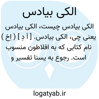 الکی بیادس. [ اَ دِ ] ( اِخ ) نام کتابی که به افلاطون منسوب است. رجوع به یسنا تفسیر و تألیف پورداود ج 1 ص 91 و «القیبیادس » شود.