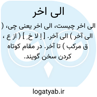 ( الی آخر ) الی آخر. [ اِ لا خ ِ ] ( از ع، ق مرکب ) تا آخر. در مقام کوتاه کردن سخن گویند.