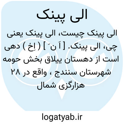 الی پینک. [ اَ ن َ ] ( اِخ ) دهی است از دهستان ییلاق بخش حومه شهرستان سنندج، واقع در 28 هزارگزی شمال خاوری سنندج، و 10 هزارگزی خاور شوسه سنندج به دیواندره. در دامنه واقع و سردسیر است. سکنه آن 635 تن سنی هستند که به کردی سخن میگویند. آب آن از چشمه و محصول آن غلات و شغل مردم زراعت و گله داری است. راه مالرو دارد. صنایع دستی زنان قالیچه، جاجیم و گلیم بافی است. ( از فرهنگ جغرافیایی ایران ج 5 ).