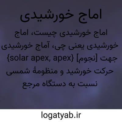 {solar apex, apex} [نجوم] جهت حرکت خورشید و منظومۀ شمسی نسبت به دستگاه مرجع موضعی متـ. آماج