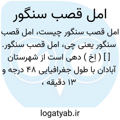 امل قصب سنگور. [ ] ( اِخ ) دهی است از شهرستان آبادان با طول جغرافیایی 48 درجه و 13 دقیقه، و عرض جغرافیایی 30 درجه و 5 دقیقه. ( از فرهنگ آبادیهای ایران ).