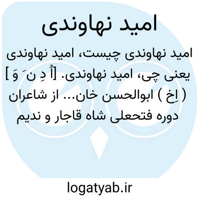 امید نهاوندی. [اُ دِ ن َ وَ ] ( اِخ ) ابوالحسن خان... از شاعران دوره فتحعلی شاه قاجار و ندیم محمودمیرزا پسر فتحعلی شاه بوده است و هنگامی که محمودمیرزا قبل از سال 1249 هَ.ق. حکومت نهاوندی را داشته کتابدار وی بوده به مجذوبعلی شاه ارادت می ورزیده و او را مدح گفته است. نسخه دیوان وی در کتابخانه مجلس موجود است ( فهرست کتابخانه مجلس ج 3 ص 230 ) و قریب 2500 بیت دارد. ( از الذریعة قسم اول از جزء تاسع ص 97 ). از اشعار اوست: