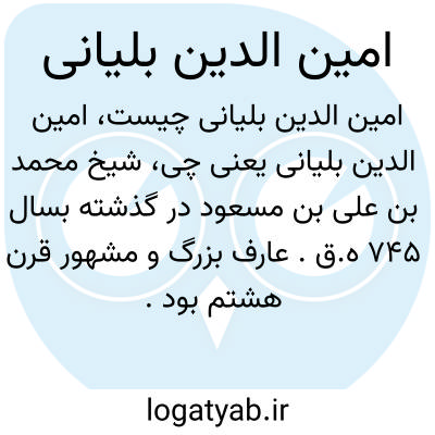 [ویکی فقه] بَلْیانی، امین الدین محمد بن علی بن مسعود بلیانی (ذیقعده ۴۵ق /۲۷۰-۶ مارس ۳۴۵م )، عالم و عارف کازرونی معاصر با آل اینجو است.