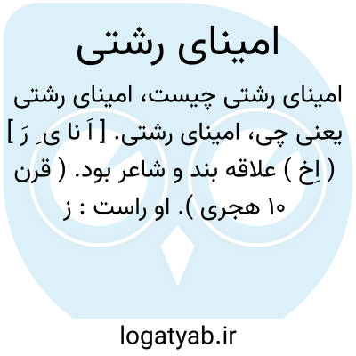امینای رشتی. [ اَ نا ی ِ رَ ] ( اِخ ) علاقه بند و شاعر بود. ( قرن 10 هجری ). او راست: