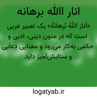 «اَنارَ اللّهُ بُرهانَهُ» یک تعبیر عربی است که در متون دینی، ادبی و حکمی به‌کار می‌رود و معنایی دعایی و ستایش‌آمیز دارد. این ترکیب از سه بخش تشکیل شده است: «اَنارَ» به معنای روشن کرد، نورانی ساخت؛ «اللّهُ» فاعل جمله؛ و «بُرهانَهُ» یعنی برهان، دلیل یا حجّت او. بنابراین معنای کلی عبارت چنین است: «خداوند برهان او را روشن و آشکار سازد» یا «خدا دلیل و حجّت او را نورانی گرداند». این عبارت غالباً برای احترام به سخن، استدلال، نوشته یا شخصی به‌کار می‌رود که گفته‌اش درست و محکم است و گوینده برای تأیید یا بزرگداشت او چنین دعایی می‌کند. همچنین در برخی متون، برای شخصی استفاده می‌شود که سخنش مطابق حق یا حقیقت باشد و دعا می‌کنند که خداوند حجّت او را تقویت کند. به‌طور کلی، این ترکیب نوعی اظهار تأیید و محترم‌شمردن سخن حق همراه با دعای خیر است.