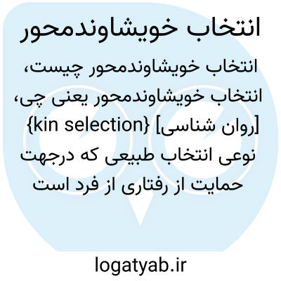 {kin selection} [روان شناسی] نوعی انتخاب طبیعی که درجهت حمایت از رفتاری از فرد است که احتمال تولیدمثل آن فرد و بقای خویشاوندانش را افزایش می دهد